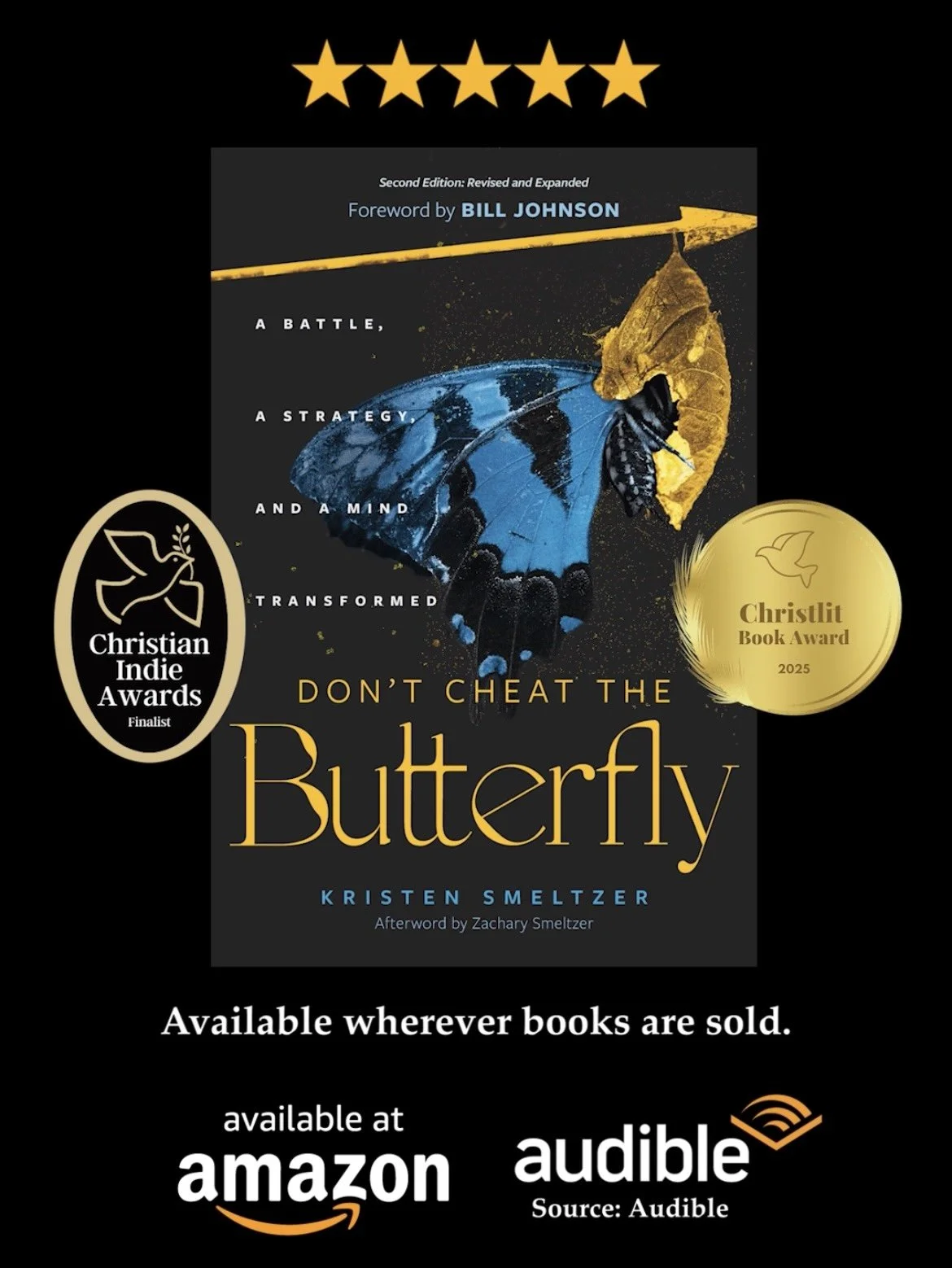 “DON’T CHEAT THE BUTTERFLY is God’s secret weapon! I found myself holding my breath as I turned the page. The strategies contained in this book are applicable to so many areas and seasons of our lives, not just the ones Kristen has so transparently and courageously written about. The contents will not only inform you, but empower you to come through victorious. I have already added the strategies Kristen Smeltzer presents to my spiritual arsenal. I recommend that everyone read this book. I will definitely pass it on!”